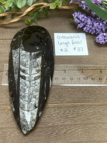 A fossil  of an extinct "straight-shelled" cephalopods that lived during the Upper Devonian period around 370 million years ago.  Possess physical and spiritual healing  powers and helps increase ones’ life span. Reduces toxins, stress, tiredness, exhaustion, low energy, and anxiety.  Enhances telepathy and stimulates the mind. Helps bring positive energy into one’s life or reduce depression symptoms. Increases confidence, grounding, and openness. Empowers accomplishments, and allows one to gain knowledge.