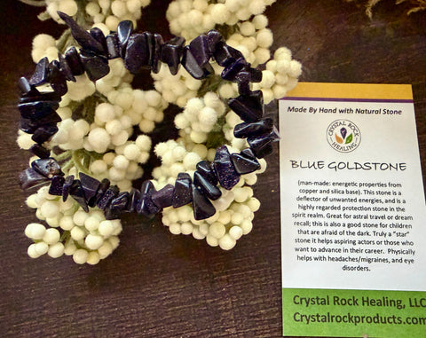 Natural Stone Chip Bracelet 7.5 inch Stretch-Blue Goldstone