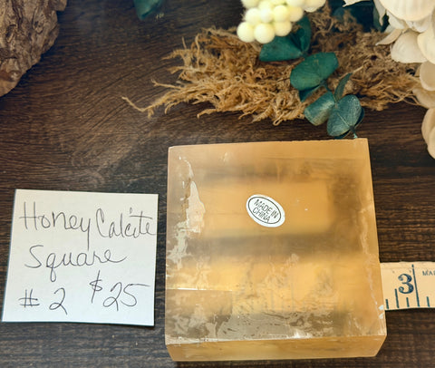Also called Amber Calcite or Gold Calcite.  It encourages responsible leadership by increasing feelings of self worth, confidence & courage. Assists with over coming obstacles & better decision making. It has a special calming property. It gently amplifies energy to smooth the challenges associated with change. Use during meditation aids to change persistent beliefs about scarcity. Associated with the root, solar plexus & third eye chakra bringing them into harmony and balance.