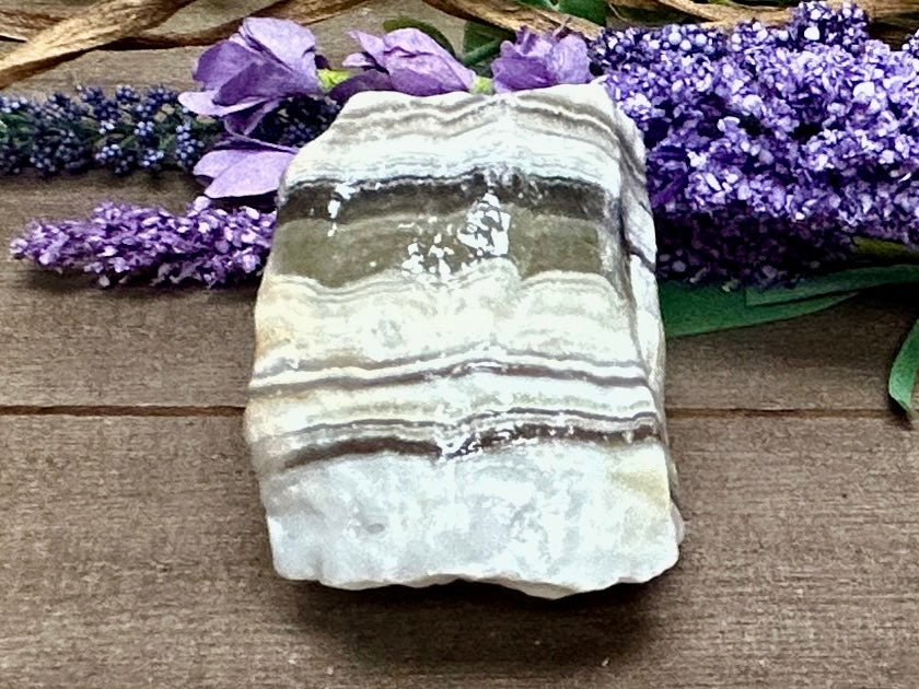 Also called “Zebra Calcite” or ”Banded Golden Calcite”.  The word Phantom refers to the Calcite being layered with phantom minerals.  It provides a joyful cleansing energy plus promotes positivity and balance.  It inspires and energizes.  Aids to cure resentment and animosity.  It strengthens positive character traits to achieve greater confidence, mental clarity and focus toward good situations.